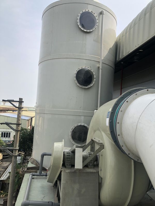 Διά την αρνητική πίεση του ανεμιστήρα, το αλκαλικό αέριο εξάτμισης ομίχλης συλλέγεται και μεταφέρεται στον αλκαλικό πύργο επεξεργασίας διάβρωσης μέσω του αερίου που συλλέγει την κάλυψη στην πλευρά και την κορυφή της δεξαμενής. Υιοθετεί το πιάτο κυκλώνων και την ταραχώδη τεχνολογία καταλυτών αφρού σφαιρών για να ενισχύσει την επίδραση απορρόφησης και να καταστήσει την εξάτμιση εκφόρτισης αερίου μέχρι τα πρότυπα.