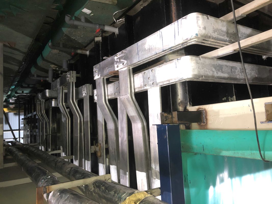 2) Θάλασσα χλωρίνης:100m2/τεχάνη × 70A/m2÷0,9 = 7777A/τεχάνη